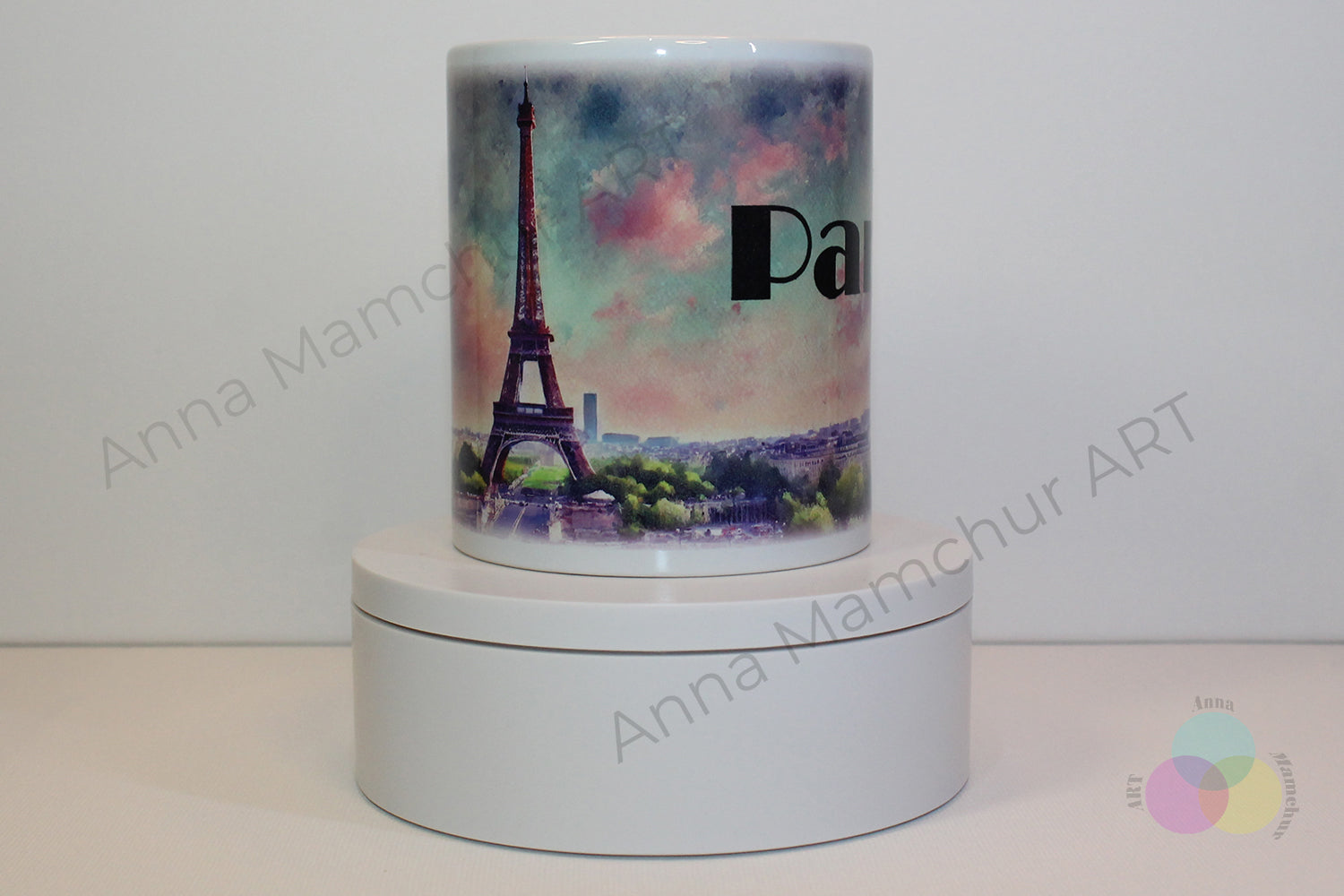 Tasse avec la tour Eiffel dans un style aquarelle — Paris | Design artistique par Anna Mamchur — 001PAA01M