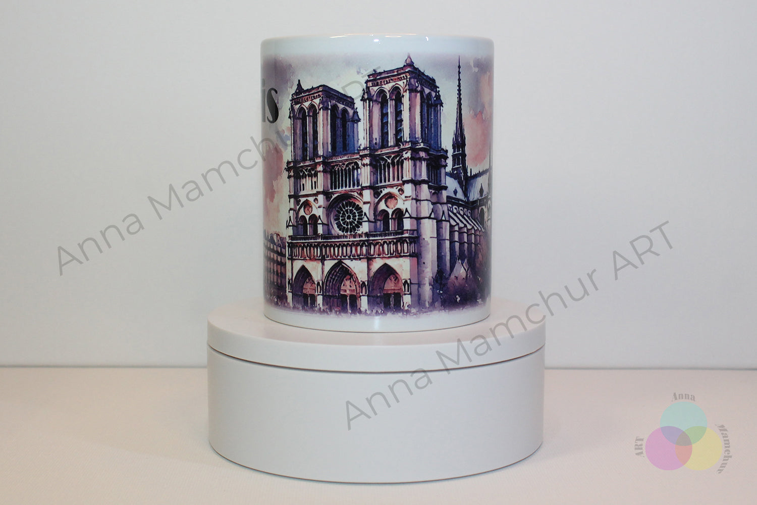Tasse avec Notre-Dame dans un style aquarelle — Paris | Design artistique par Anna Mamchur — 003PAA01M